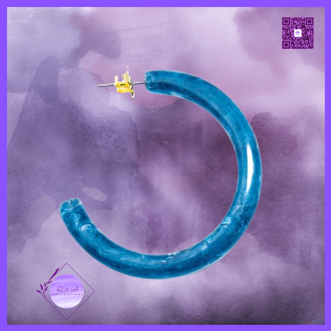 Materials: Monochromatic Chunky Hoop Resin Earring with Marbled, Semi-Translucent Design. Nickel and Lead Compliant (Hypoallergenic)